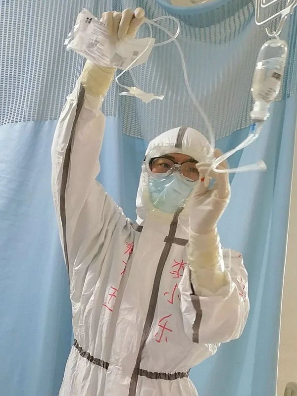 不论是办公班还是责任班,李小乐同志都对工作流程得心应手。在隔离病房工作的日日夜夜里,他除了负责出入院患者的办理,处理医嘱,输液、打针等常规治疗外,他还主动给患者倒水、送饭、喂药、清理大小便、普及疫情防护知识。他深知,这些患者没有家属照顾,医护人员就是患者的家属、他们的子女!每天把自己包得密不透风去工作,即使扎几个针,换几个液体,都会胸闷、气喘,心率增快,甚至会出现恶心、头痛。但是看着那些患者对生命的渴望,就算再大的困难他也会跨过去,因为他知道这些患者需要他。