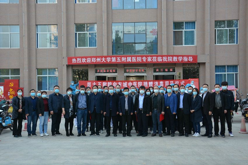 2020年4月23日上午,郑州大学五附院副院长傅聿铭、朱光带领神经外科、神经内科、消化内镜中心、泌尿外科、心肺康复科、内分泌科、医疗保险办公室、信息与远程医疗科、药学部、医疗协作办公室等科室的医学专家和部门负责人,赴方城县中医院开展技术交流活动暨部分消毒用品捐赠。