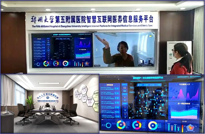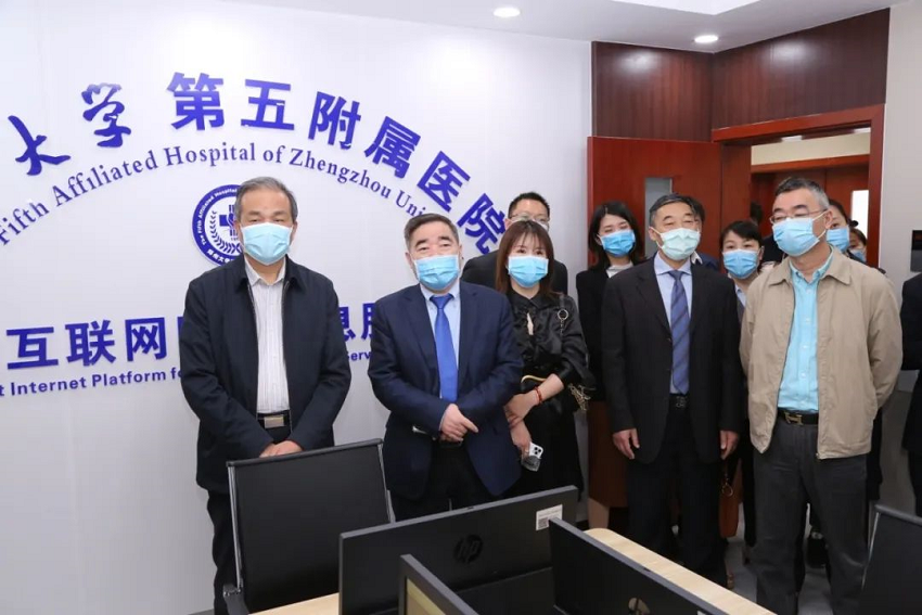 在郑州大学五附院院长郑鹏远教授、副院长王少亭教授及相关职能部门负责人的陪同下,马保根会长一行第一站到访了郑州大学五附院直属福华街社区卫生服务中心——智慧互联网医养信息服务平台。