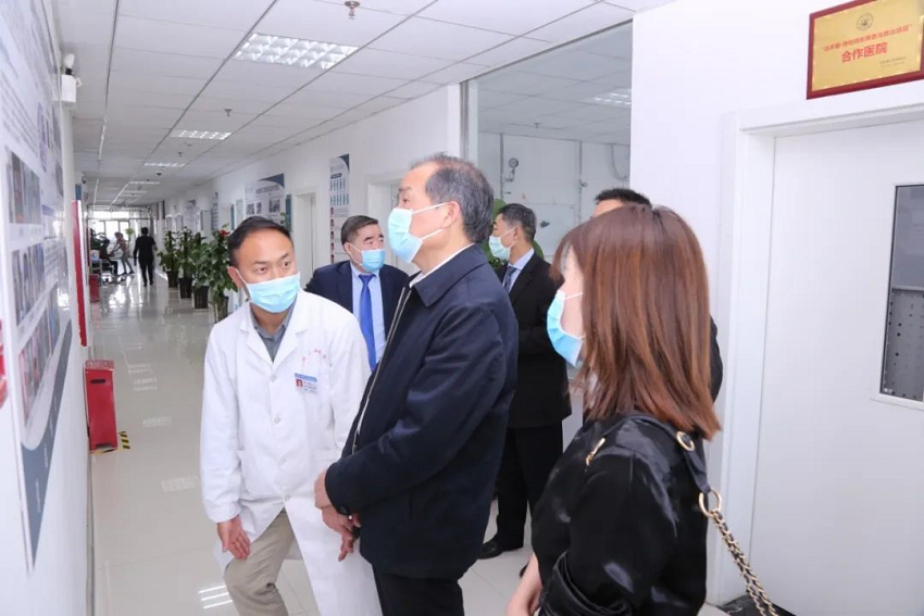 2020年4月28日,河南省医院协会会长马保根、美景集团副总裁刘明华、美尔项目总经理陈玉华等一行8人到访郑州大学五附院,深入基层社区卫生服务中心调研医养结合工作开展情况;走访医院本部马歇尔医学研究中心、康复医学工程科、河南省主动健康和老龄化科技应对研究中心考察实验室建设、康复产学研成果及老龄化健康创新与应用;与院领导召开座谈会,对作为“河南省医院协会医养结合管理分会主委单位”的郑州大学五附院在疫情特殊时期努力做好医养结合工作的思路和举措给予肯定,同时也对下一步工作提出要求。