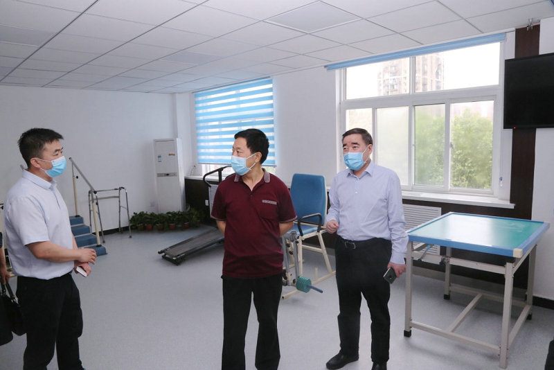 在这样春末夏初的美好时节,郑州市卫健委党组成员张中建、老龄健康处处长张浩、副主任科员黄铁建、梁国江、河南省人口学会会长张原震以及二七区卫健委副主任马素萍、老龄健康科科长杜申焕等一行8人,莅临郑州大学五附院福华街社区卫生服务中心调研社区医养结合工作。医院院长郑鹏远、副院长王少亭与相关职能科室负责人一起热情接待了来访领导。
