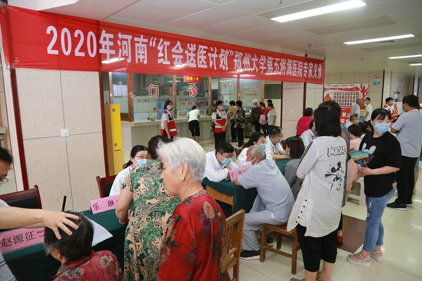 2020年6月11日上午,按照省红十字会安排,郑州大学五附院院长郑鹏远,副院长傅聿铭、朱光带领由12名医疗护理专家,院办、信息科、医保办、宣传科、医疗协作办等职能科室负责人及相关工作人员组成的志愿服务队,赴方城县参加河南省“红会送医计划”实施项目启动仪式,在当地深入开展“送知识、送技术、送服务”活动。