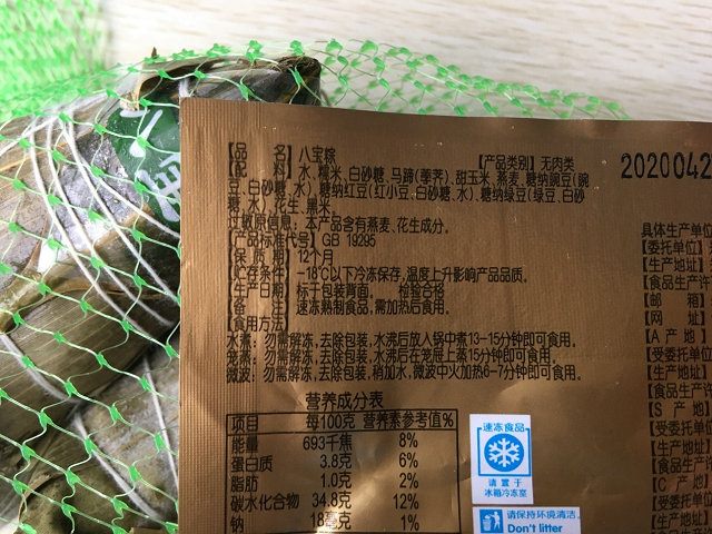 第三,查看配料表及营养成分表,选择适合自己的粽子种类;