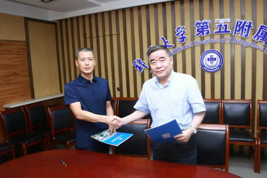 同时,受登封市卫健委主任杨洋委托,高胜利副主任代表登封市卫健委履行一项重要任务:依据郑州市卫健委《关于择优选定区域医养结合管理控制中心的通知》(郑卫老龄〔2020〕5号)文件要求,为推进登封市卫健委医养结合和示范机构创建工作,提升登封市医养结合工作质量和服务能力,经调查研究,从文件推荐5个区域医养结合管理控制中心备选单位中,选定与郑州大学五附院签署“医养结合管理控制”协议。