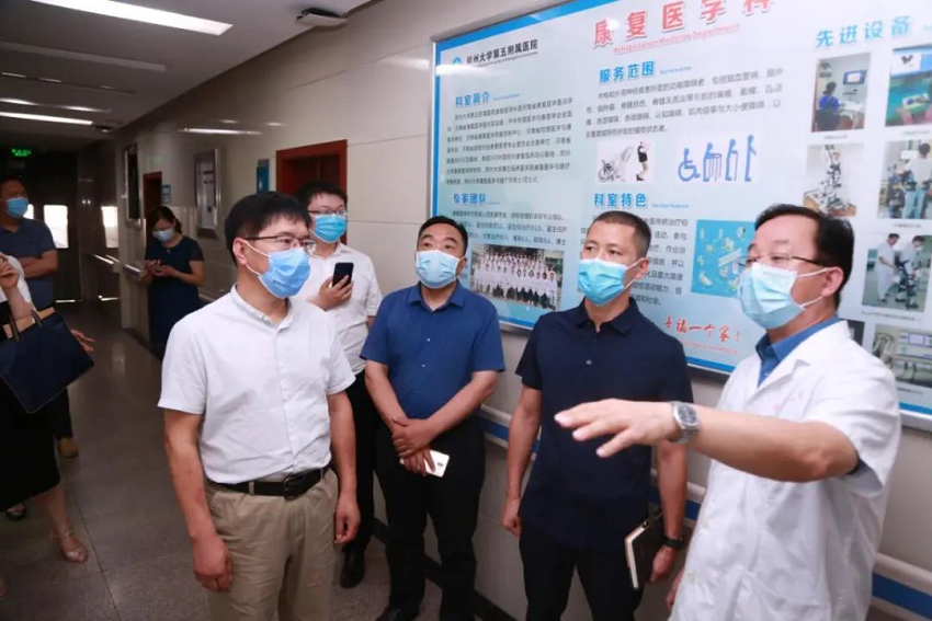 2020年7月8日,登封市卫健委党组成员、副主任高胜利,医政药政科科长景洪敏、老龄工作负责同志吕文丰,郑州十六医院养生院院长杜建军、办公室主任李云菲,大冶镇卫生院长陈建玲一行六人莅临郑州大学五附院就医养结合发展进行座谈、调研与交流。座谈会在郑州大学五附院行政楼二楼会议室进行,院领导郑鹏远、周文平、王少亭出席会议,相关职能部门负责人参加了座谈交流。会议由医院副院长王少亭主持。