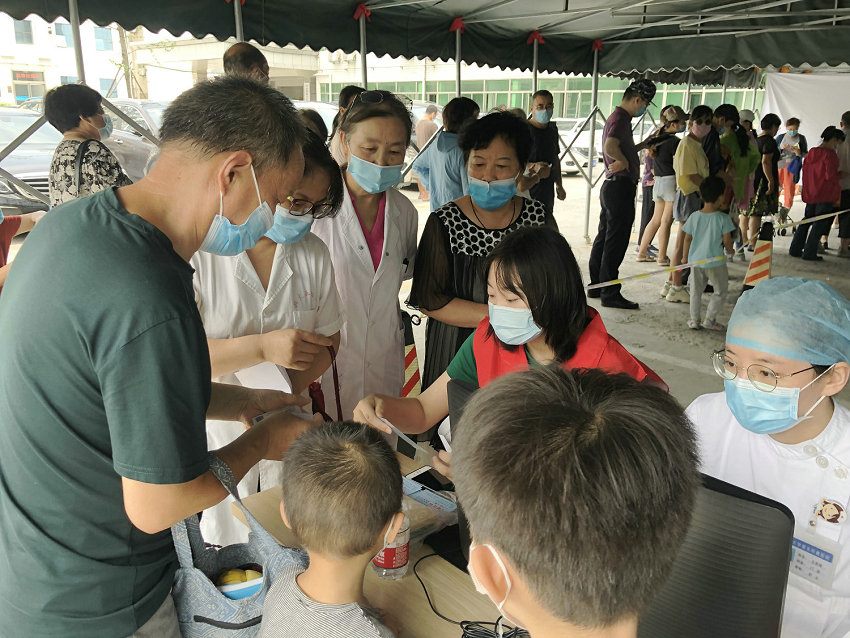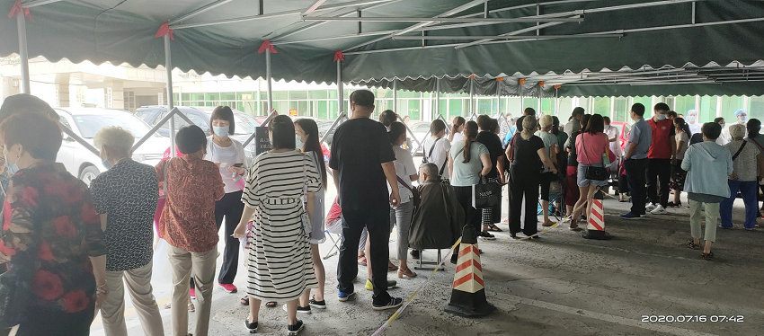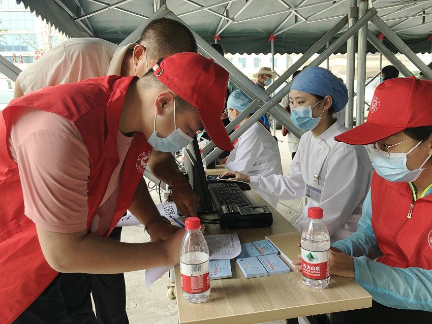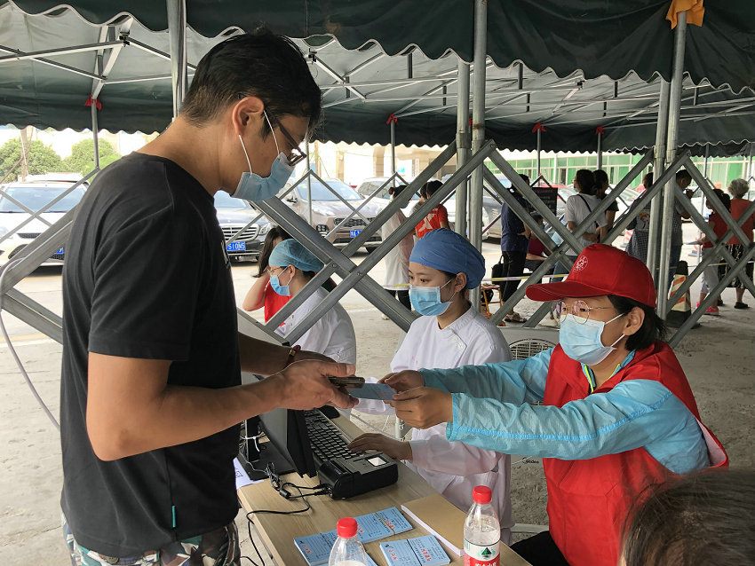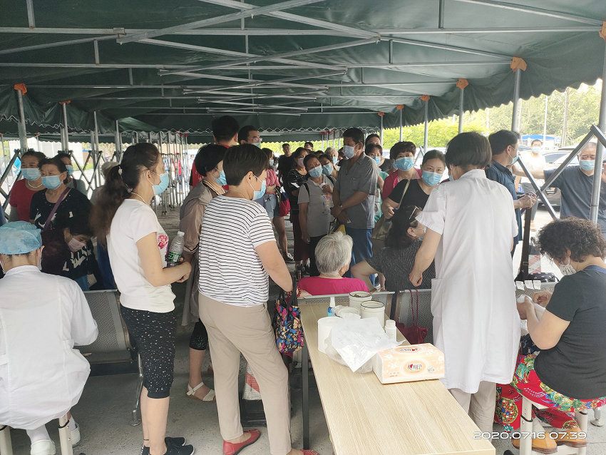 7月16日上午7时,来自职能科室的13名青年志愿者准时在11号楼前集合,前来贴伏的市民也早已排起了长队,青年志愿者们迅速进入各自岗位,提醒排队人员保持安全距离、正确佩戴口罩,协助市民提前完成线上缴费,做好收费项目电脑录入、贴伏卡发放等工作,贴伏现场秩序井然。