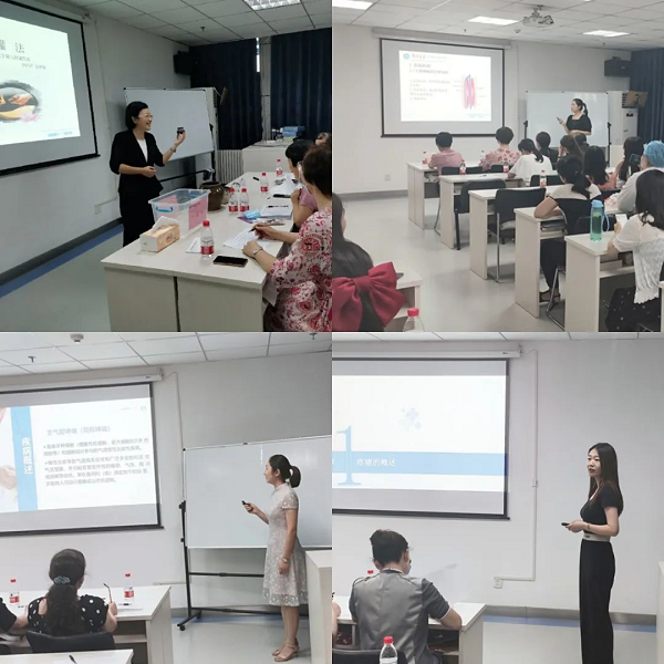 此次活动自7月初学院下发通知并启动以来,护理人员踊跃报名积极准备,各病区护士长大力支持并进行了初筛,最终共有43名选手参加本次预赛。参赛选手根据抽签顺序依次上台进行8分钟授课,各参赛选手深入浅出、声情并茂、精彩纷呈,充分展现了青年护理教师的自信与魅力,体现了内容的专业性、逻辑性、创新性,教学手段富有先进性、趣味性。精彩的PPT展示、巧妙有趣的图片讲解、详细明了的视频解说以及贴近实际的模型教学……或激情澎湃,或循循善诱,现场互动氛围活跃,赢得了评委老师及学生们的阵阵掌声。