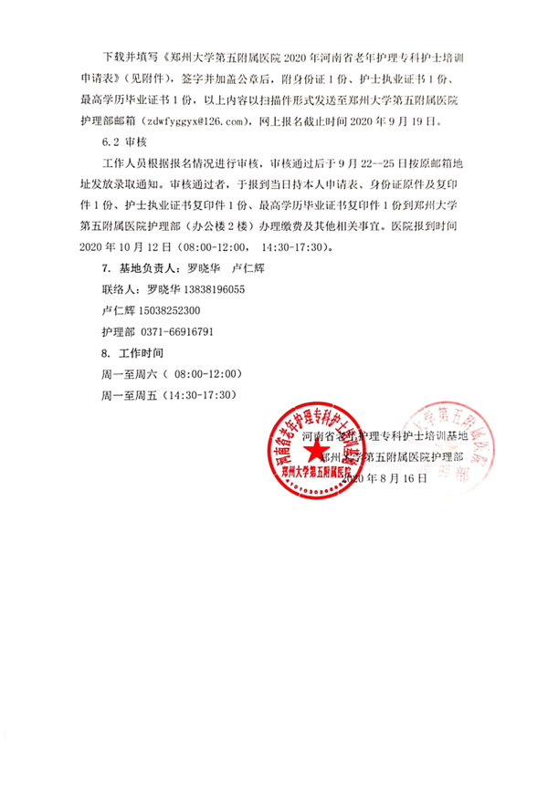 附件3-郑州大学五附院2020年河南省老年护理专科护士培训申请表