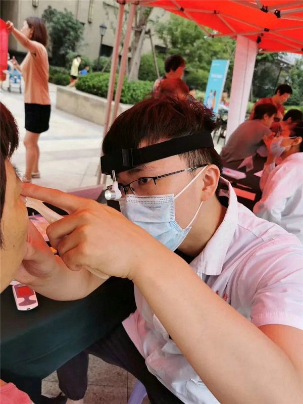 炎炎夏日也抵挡不住居民的热情,活动现场火热且井然有序。前来咨询义诊的居民中,中老年人占了大多数,问题也大多集中在腰腿疼痛、头晕失眠、心慌气短、消化不良、听力障碍等病症上。专家们耐心地与每一位前来问诊的居民进行交流,询问其过往病史、病情控制程度,针对不同病症和个体差异提出合理的诊疗建议和治疗方案。并对常见病和慢性病防治健康知识进行宣讲,同时发放健康宣传资料,倡导健康的生活方式。现场建立了专家-居民微信群,登记信息,免费测量血压、血糖。