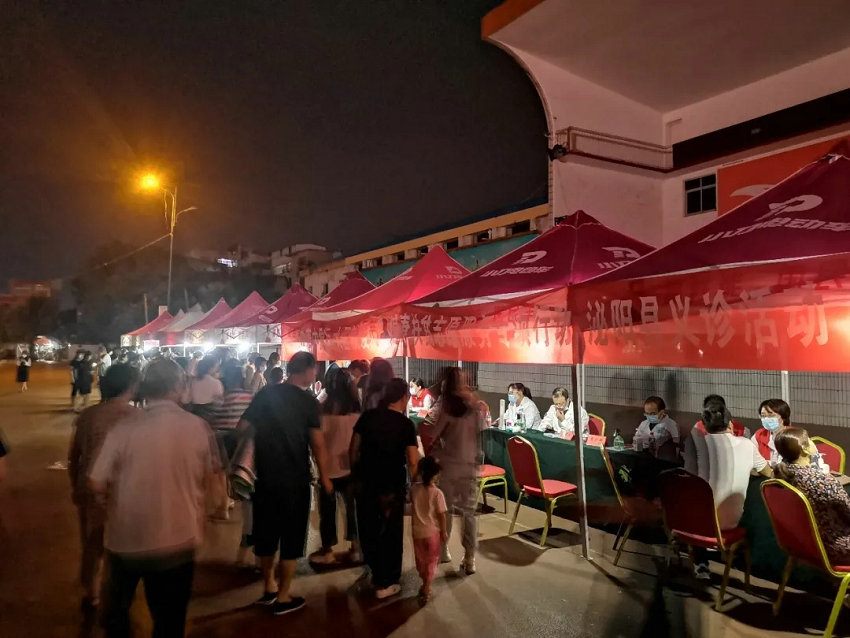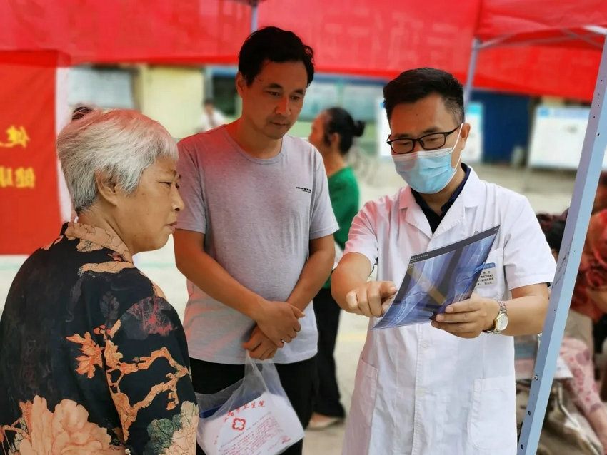 为了能尽快投入工作,虽然已是傍晚,各位专家到当地后来不及放下行李,便立刻投入到义诊当中。在义诊活动现场,闻讯赶来的百姓将专家们团团围住。有询问,有倾听,专家们耐心为其一一解答各种问题。