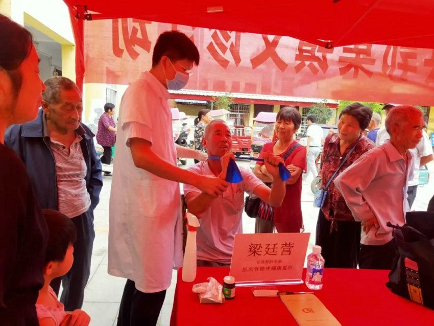 肌肉骨骼疼痛康复科副主任梁廷营桌边挤满了前来问诊的病人,由于多数患者表示腿部、膝关节疼痛,梁主任俯身为每一名百姓进行诊断,并用手法现场为其康复治疗。活动结束后他笑着说:“每次义诊确实很累,很辛苦,但是想到为当地百姓送去了健康,让他们得以康复,所做一切都是值得的。”