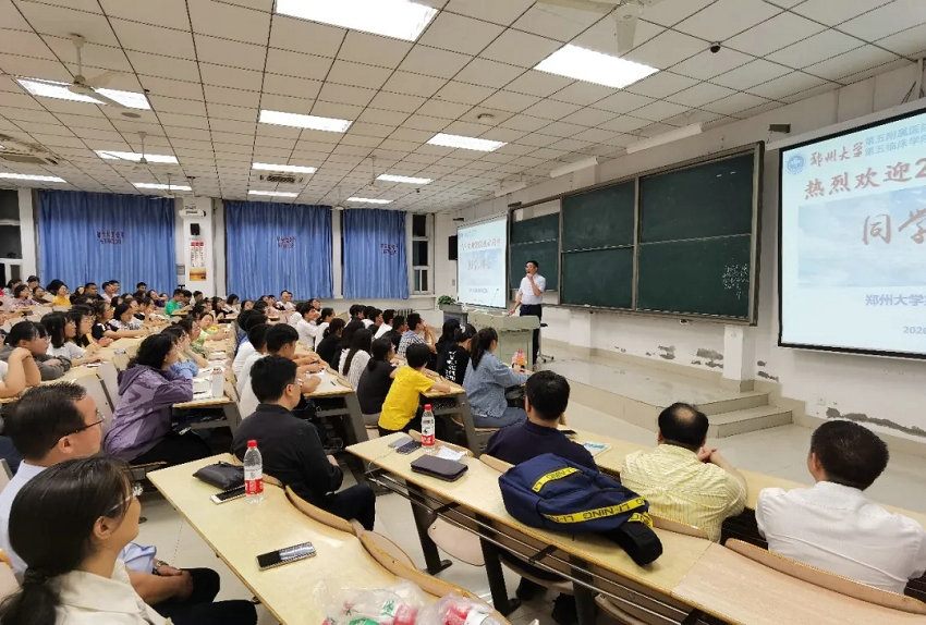 时隔十日,秋分之际,2020年9月23日晚7点,我们又迎来了郑州大学医学院医学技术类本科2020级新生,并在郑州大学新校区召开了新生见面会。郑州大学五附院副院长、郑州大学康复医学系副主任、康复医院院长汤有才带领神经康复科主任李哲、教学与学科办公室主任冯慧芬,副主任王双,参加了此次新生见面会。