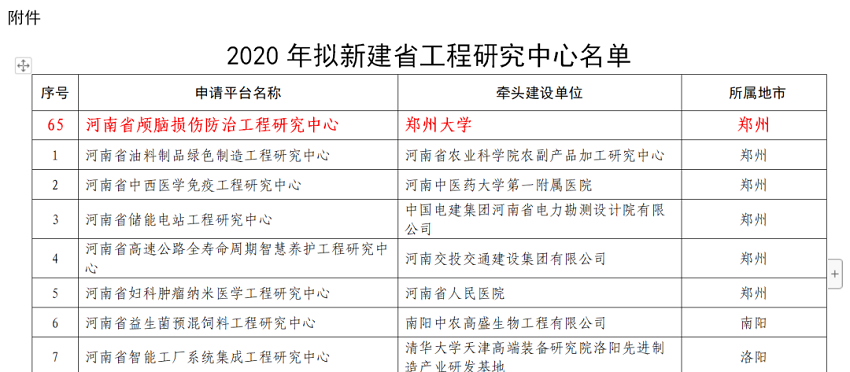 ▲ 2020年王新军教授团队申报河南省颅脑损伤防治工程研究中心获批建设