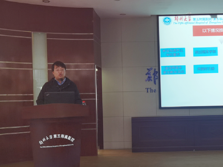 在入学教育周,主管研究生工作的副院长王兵教授和科研与研究生办公室老师向新生讲解了研究生管理制度、培养环节、申请学位的相关要求。同时入学教育内容还涵盖了爱国主义教育、支部建设、实验室管理、宿舍安全、住院医师规范化培训、控感知识、消防知识等教育。