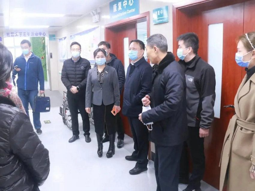 随后,郑翔副处长一行在王少亭副院长及相关职能部门负责人陪同下实地参观了医院直属福华街社区卫生服务中心智慧医养结合服务平台建设与运营管理情况。