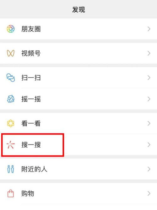 1.打开微信,点击“发现”并打开“搜一搜”。