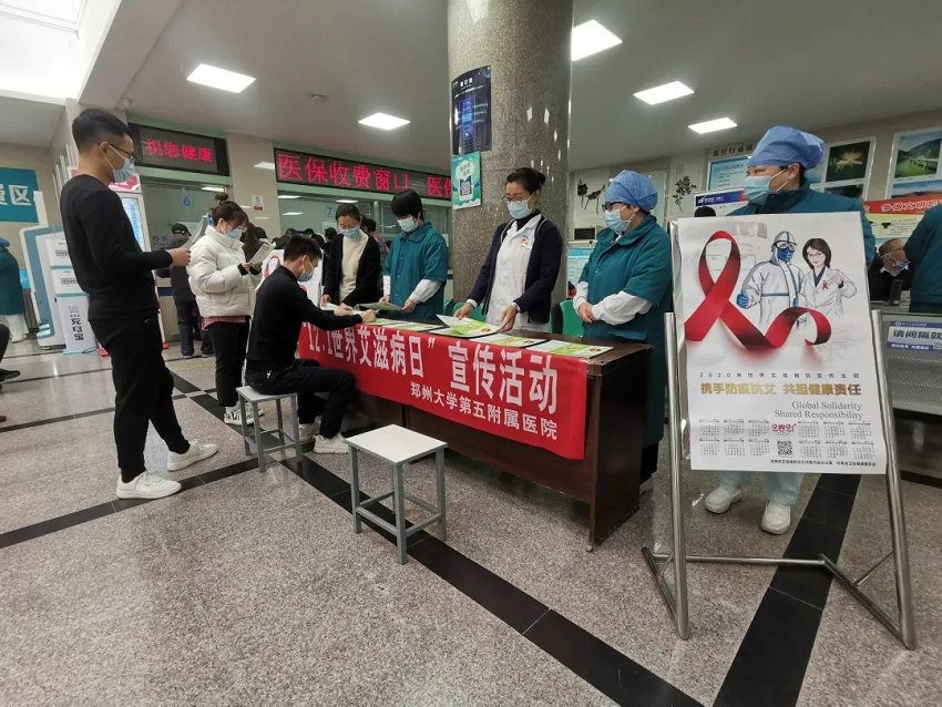 2020年12月1日是第33个“世界艾滋病日”,为了进一步对本院职工、辖区居民以及来院就诊患者进行预防艾滋病相关知识的普及,提高对艾滋病的防治意识,郑州大学五附院在省艾防委的号召下,积极开展了以“携手防疫抗艾,共担健康责任”为主题的宣传活动,旨在加强防病意识,携手共同应对新型冠状肺炎、艾滋病等重大传染病所带来的重大挑战。