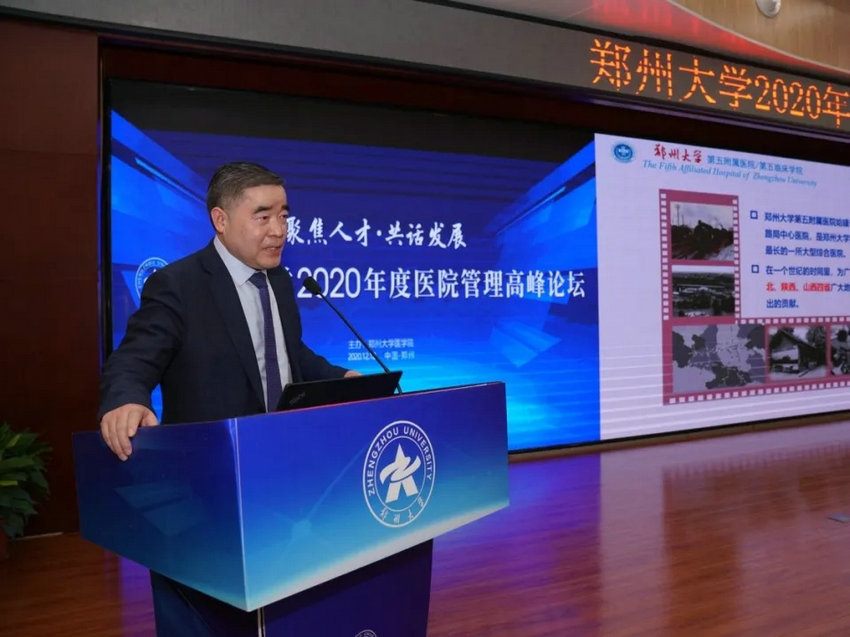 2020年12月12日,由郑州大学医学院主办的郑州大学2020年度医院管理论坛如期举行。国家卫生健康委人才交流服务中心党委书记张俊华、中南大学副校长陈立章,河南省教育厅党组书记、厅长郑邦山,副厅长张传广,河南省卫生健康委党组书记、主任阚全程,郑州大学党委书记宋争辉,党委副书记、医学院党工委书记谷振清,副校长、一附院院长刘章锁,副校长、医学院院长董子钢等领导,学校相关职能部门和医学院系负责人、各附属医院班子成员、医护人员代表等参加论坛。