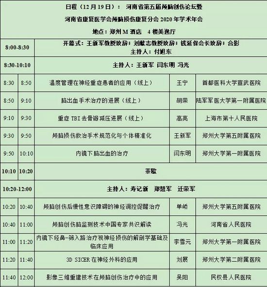 直播预告 | 河南省第五届颅脑创伤论坛暨河南省康复医学会颅脑损伤康复分会2020年学术年会