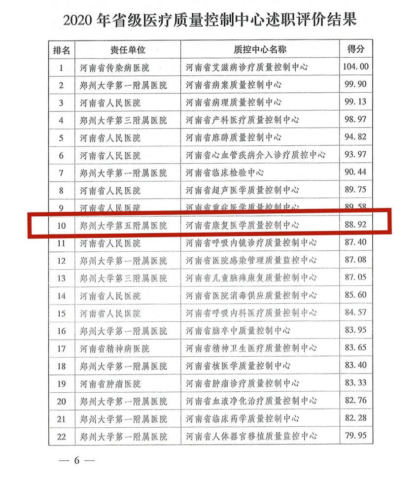 河南省康复医学质量控制中心自2012年7月经河南省卫健委同意成立,并挂靠在郑州大学第五附属医院。作为责任单位,充分认识到省级质控中心的责任与使命,认真履行责任单位管理保障职责,并采取精准化管理措施,积极强化保障力度。