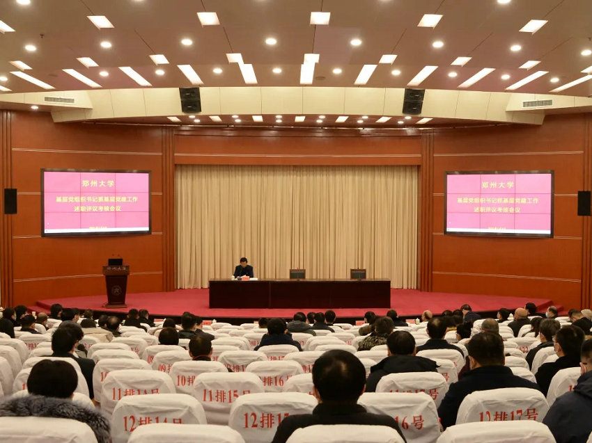 2021年1月6日,郑州大学在主校区召开2020年度基层党组织书记抓党建工作述职评议考核会议。郑州大学五附院党委书记王新军作述职报告,党委副书记、工会主席徐翠英参加会议。