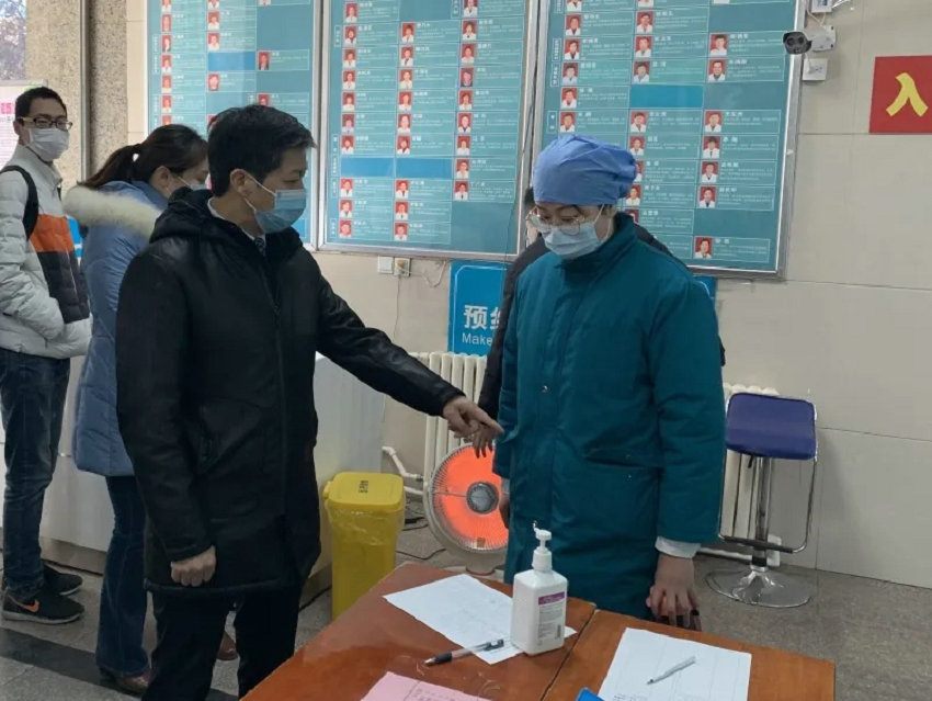 王书记看到站在南大门执勤的护士时说道,“天气寒冷,要注意保暖,把棉大衣的拉链拉严实,别给冻着了。责任重大,条件有限,你们辛苦了。”来到南大门的职工通道时,王书记看见站在寒风中的保安人员,立即召集相关科室负责人进行现场协调,看看能否安装保温帐篷,要保证保安人员的身体健康。他说道,有的保安人员年龄偏大,抵抗力差,如果一直站在寒风中,身体受不了,要想办法解决避风保暖的问题。