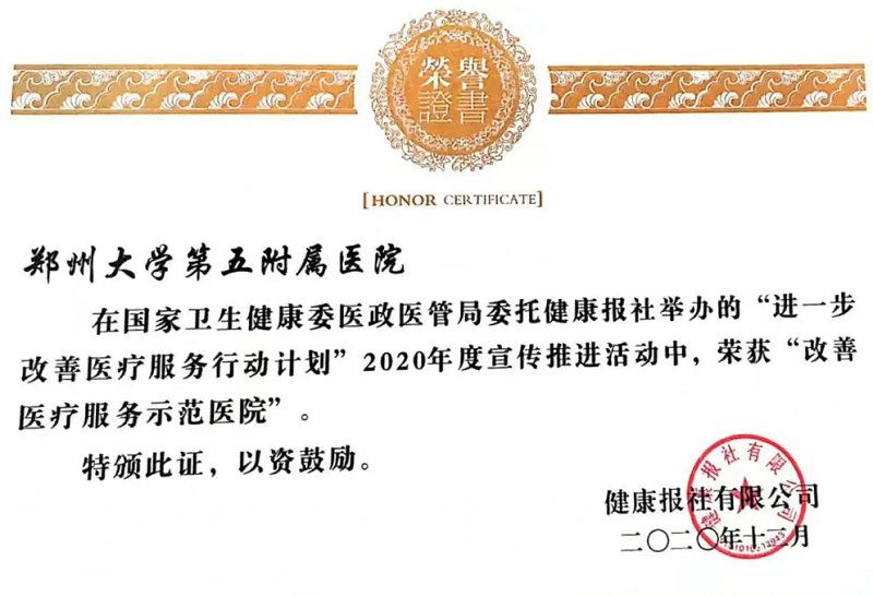 近年来,郑州大学五附院强化服务意识,优化服务流程,狠抓服务质量,医疗服务提升效果明显。