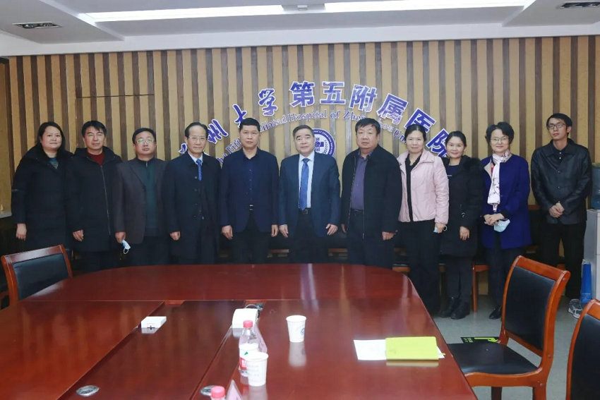 2021年2月23日,信阳市第三人民医院党委书记、院长张国栋,副书记、副院长余新华,医务科科长王鹏飞,门诊办主任、医疗发展科科长乔杰,信阳交通医院院长白美胜等一行来郑州大学五附院座谈交流。郑州大学五附院党委书记王新军、院长郑鹏远、副院长朱光热情接待来访人员,相关职能部门负责人参加了座谈会。