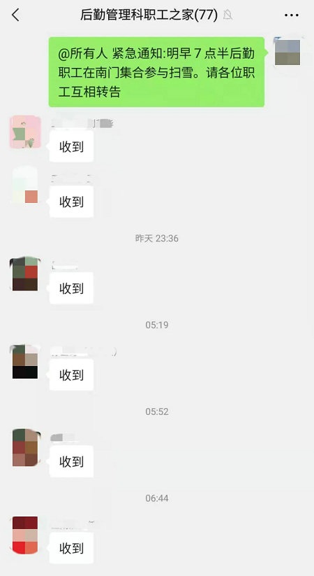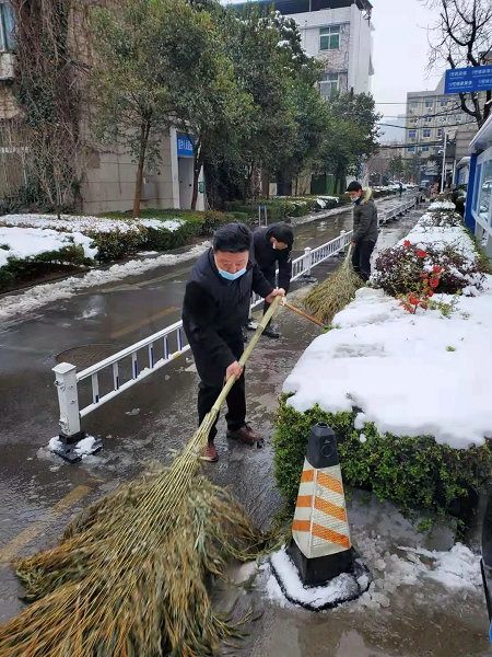后勤职工全员出动,破冰除雪确保畅通