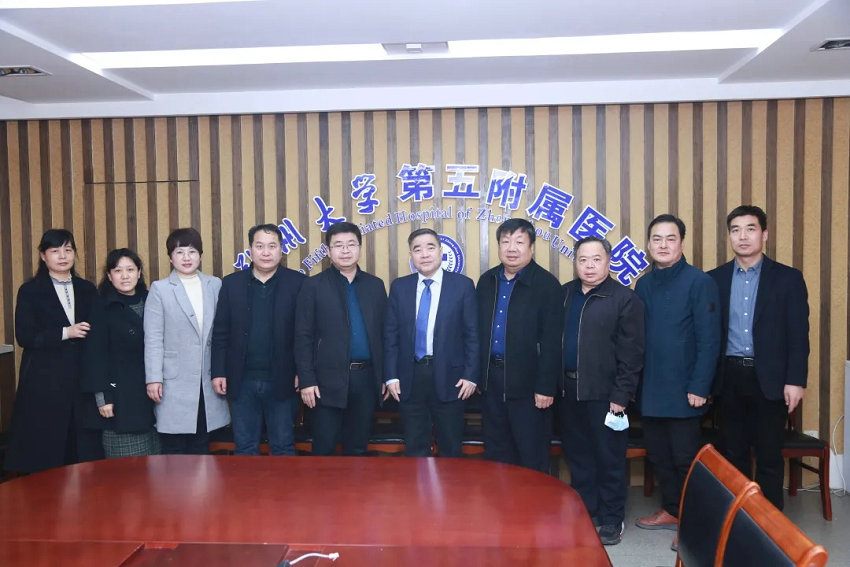 2021年3月4日,管城回族区人民医院院长丁震东、业务副院长吴述魁、医务科科长尚军霞、办公室主任胡爱玲和胃镜室主任蔡雪芹等一行来郑州大学五附院座谈交流。郑州大学五附院院长郑鹏远、副院长朱光热情接待来宾,院办等相关职能部门与临床科室负责人参加座谈会。