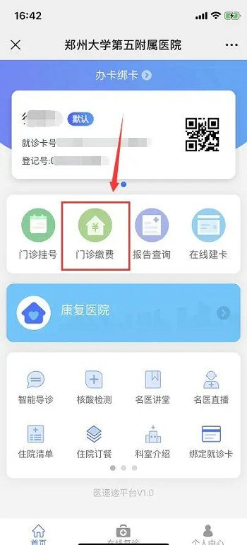 【门诊缴费】就可实现快速缴费