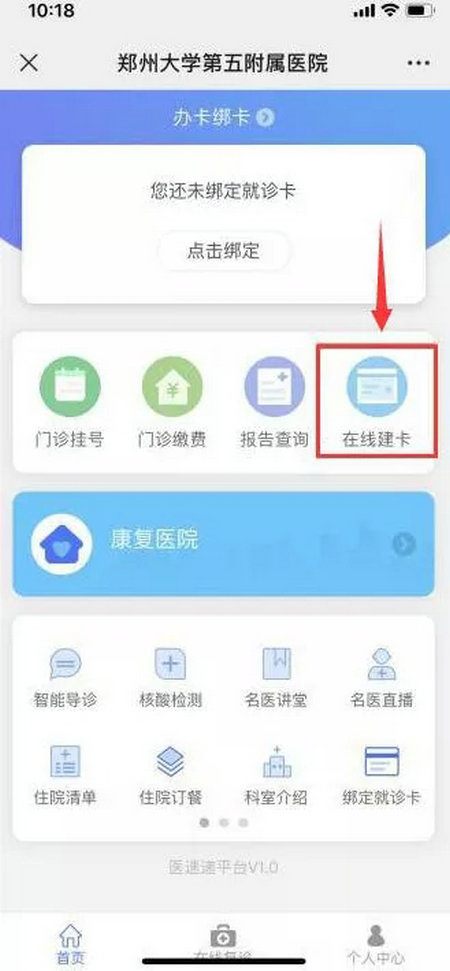 温馨提醒:有就诊卡的朋友登录郑大五附院智慧互联网医院平台后请先绑定就诊卡,可避免重复建卡哦~