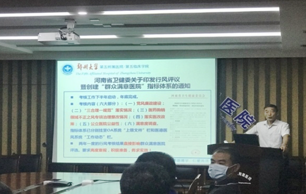 2019-2020年,郑州大学五附院在省卫健委和郑州大学的正确领导下,突出重点领域,创新方式载体,完善制度体系,强化监督管理,通过构建教育预防、监督巡查、跟踪整改、惩处问责的长效工作机制,确保行风建设工作取得了显著的成效。