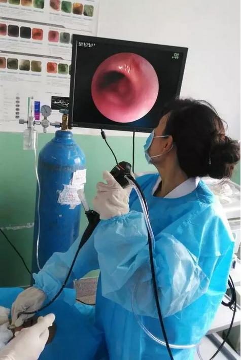 为了给肿瘤患者病理诊断,她把将近二十年的老本行纤维支气管镜又拿起来,亲自带教指导当地医生,解决了该院纤支镜检查要从乌鲁木齐请专家的问题。