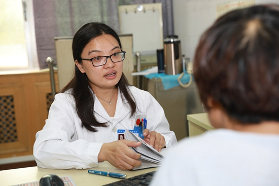 8:50,查房结束后,巴楠主任步履匆匆赶去坐诊,接诊室的走廊上坐满了前来找她看病的患者,不少是来复诊的,看到巴主任走过来,远远地笑着打起了招呼......