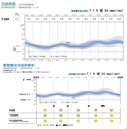 动态血糖监测很好的弥补了自我血糖监测与糖化血红蛋白测定的不足,通过葡萄糖感应器监测皮下组织间液的葡萄糖浓度从而反映血糖水平,能够提供连续、全面、可靠的全天血糖信息,了解血糖波动的趋势,发现不易被传统监测方法所探测的高血糖和低血糖。