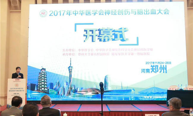 11月24-26日,由中华医学会主办,郑州大学五附院、陆军军医大学第一附属医院(重庆西南医院)联合承办的2017年中华医学会神经创伤与脑出血大会在在郑州召开,来自全国各地500余名神经外科同道齐聚郑州黄河迎宾馆,就神经创伤与脑出血的临床治疗及基础研究等方面展开深入交流。会议由郑州大学五附院党委书记、神经外科学科带头人王新军教授及重庆西南医院神经外科主任冯华教授担任大会执行主席;郑州大学五附院神经外科寿记新主任、单峤主任、付旭东主任担任大会秘书长;郑州大学五附院神经外科青年医师周少龙担任大会副秘书长。