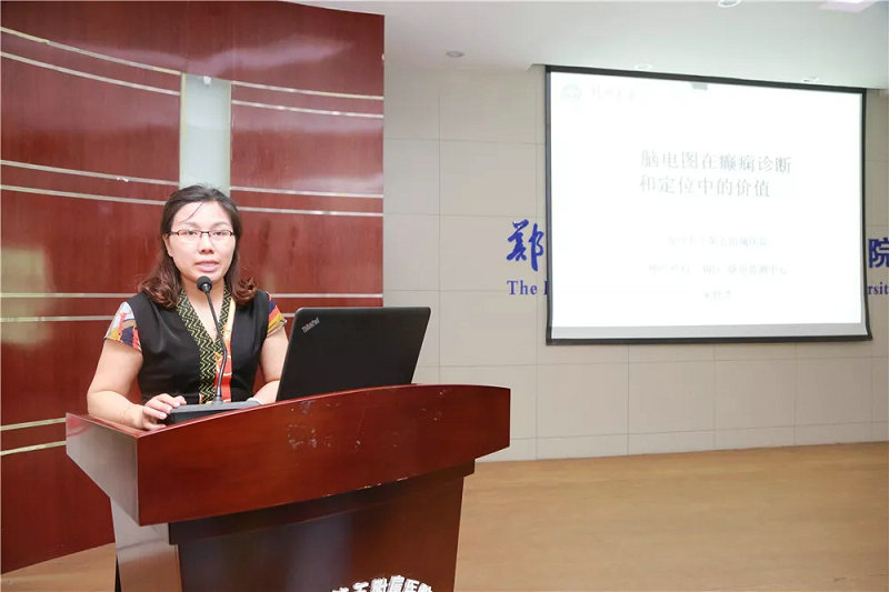 ▲ 吴艳芝副主任医师主持活动并讲解脑电图在癫痫诊断和定位中的价值