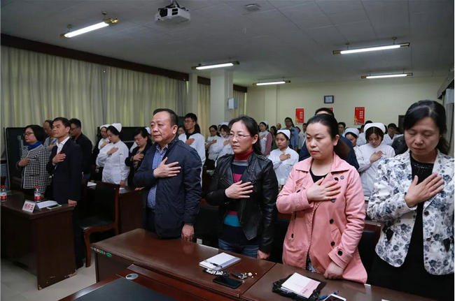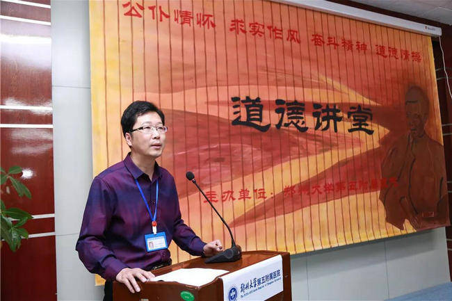 2018年3月30日下午郑州大学五附院在门诊楼五楼会议室召开以“医护人员如何树立正确的价值观”为主题的道德讲堂。党委副书记、纪委书记徐翠英,主讲人杨怀玉副院长出席了此次活动,党办和宣传科负责人、各党支部书记、职能科室负责人、医护人员近一百人参会。讲堂由宣传科科长王凯主持。