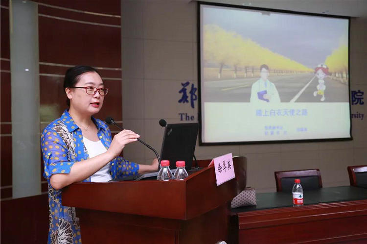 徐翠英书记详细介绍了医院的各项规章制度、院史、院徽、院歌和医院职工丰富多彩的文化生活。她围绕如何《踏上白衣天使之路》这一主题,对新员工的个人道德和职业道德提出了要求,希望在座的各位都能传承医院的优秀文化和前辈先贤的奉献精神,在新的岗位中展现出良好的医德医风和内在素养,为医院的复兴发展奉献自己的力量。