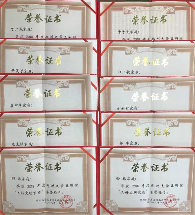 创建活动得到医院各基层工支会广大工会干部的大力支持和广大职工的积极响应,涌现出一大批爱国爱家、向上向善、爱岗敬业、夫妻和睦、勤俭持家、邻里团结、公益助人的文明家庭。经医院各基层工支会自下而上认真评选推荐,院创建活动小组评审、五附院工会委员会研究决定对评选出的郭君等10户2018年度“五好文明家庭”和12户获提名奖的家庭进行了表彰奖励。倡导广大教职工既爱小家,更爱国家,带领家庭成员共同升华爱国爱家的家国情怀、建设相亲相爱的家庭关系、弘扬向上向善的家庭美德,在促进家庭和睦、亲人相爱、下一代健康成长、老年人老有所养等方面担起责任,弘扬清风正气,以好的家风支撑起好的社会风气。