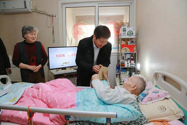 在2019年新春佳节即将来临之际,为感谢医院老领导、老专家、老同志在医院建设发展中做出的贡献,切实把党的温暖落到实处,把医院的关怀送到老同志的心中,使他们过上一个幸福欢乐、祥和温暖的春节,按照学校党委组织部要求,2019年1月30日和31日上午,在党委书记王新军的带领下,副院长杨怀玉、工会主席朱光和党办、院办、宣传科及退休党支部负责人,先后走访慰问了退休老专家、老同志及困难党员职工,到家中慰问了为医院学科建设做出了突出贡献的原病理科老主任孔祥光,看望了正在医院住院的原党委书记高玉等老同志,向他们通报了医院建设发展的近况,关心询问了老同志们在生活上需要解决的困难,详细了解他们的健康情况,并致以新春的祝福和美好的祝愿。老同志们十分感谢医院领导的关心关爱,对医院近年来在党建和医疗、学科、教学等全方位所取得的显著成绩给予了高度评价,也祝福医院的明天越来越好。