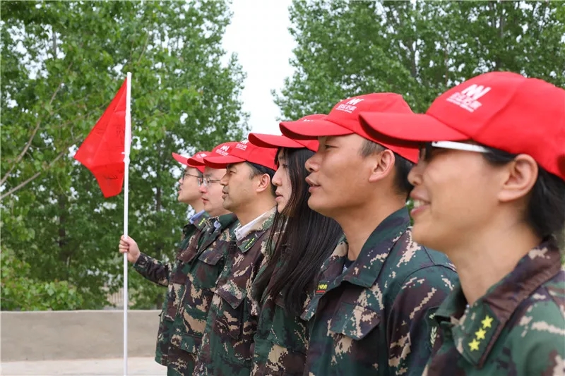 8:00顺利抵达培训基地后,全员按教练口令十分钟内迅速换装,集合完毕后进行了统一行为规范、加强团队意识、培养纪律性的“军事训练”。休息期间远航教练为大家详细介绍了拓展训练的历史起源、发展、普及以及国内、省内的第一家拓展训练基地,重点介绍了拓展训练对于提升个人和团队的重要性。随后全员分成两队进行团队组建,每队选出队长,政委和安全环保员,在队长、政委的带领下制定本队文化:队名、队呼、队歌、队标,之后每队进行了PK版的“风采展示”。接着全员齐唱营歌,科教科冯慧芬副科长作训前总动员,授旗仪式,面对队旗右拳贴于心的位置进行宣誓,完成了开营仪式。