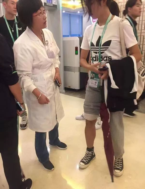 9月12日清晨,天气转凉,运动员们要去黄河游览区参加民族大联欢,马颖光副主任、付宝芳护师担心前期受伤运动员的身体状况,主动在一楼大厅安检处随访和问诊。