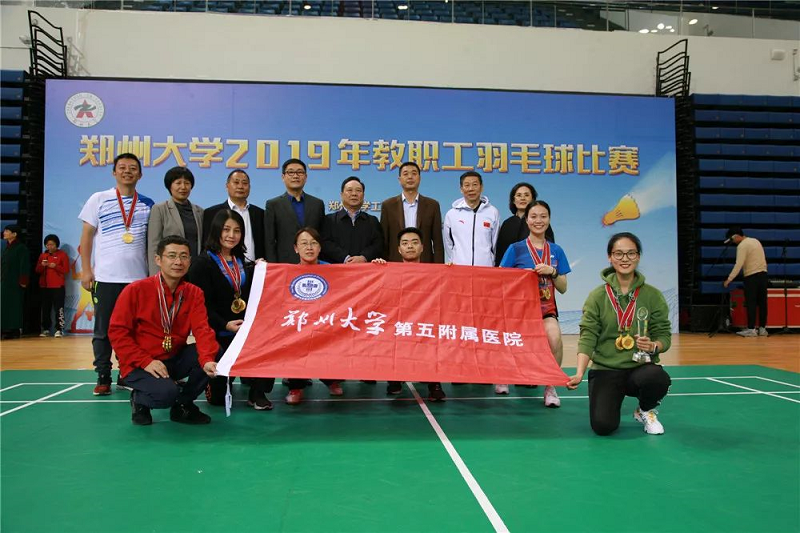 2019年10月27日,郑州大学教职工羽毛球比赛在郑州大学中心体育馆落下帷幕。本次比赛全校共34个基层单位,400余名教职工参加。分为团体、男单、女单、男双、女双、混双等六个项目的比赛,郑州大学五附院羽毛球队最终获得团体第五名,女双第一名,混双第三名,女单第五名,男单、男双第七名,所有参赛项目均进入前八名的好成绩。